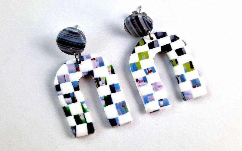 Tutorial: Pendientes aprovechando restos de arcilla polimérica con estampado de ajedrez