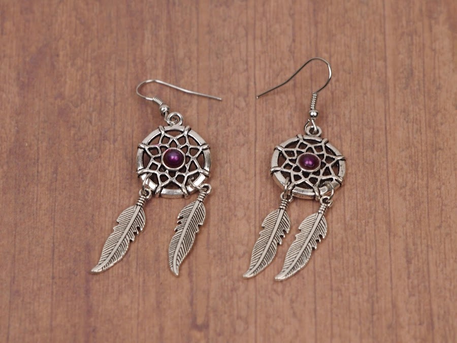 Hoy quiero enseñaros estos pendientes atrapasueños de zamak, decorados con una pequeña cuenta morada en el centro para darle un bonito toque de color.