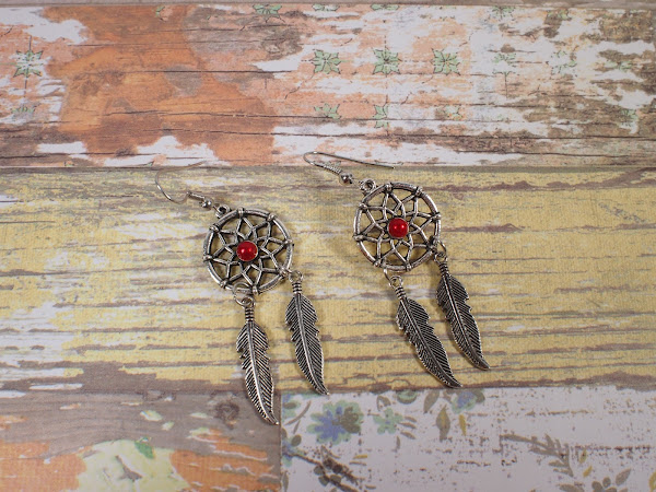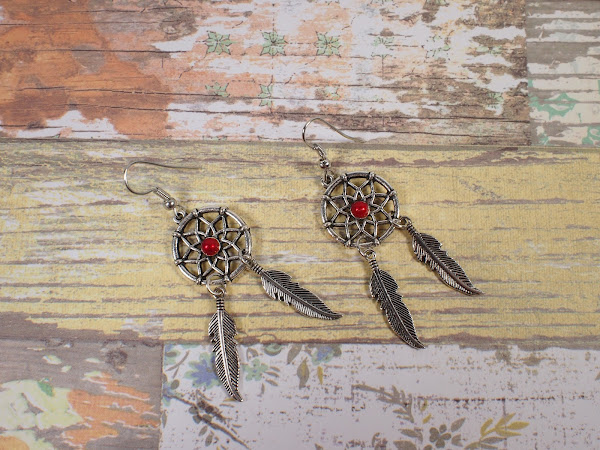 Hace unos días os enseñaba unos pendientes atrapasueños con media cuenta en el centro, de color morado. Bueno, pues hoy lo que os traigo es el mismo modelo de pendientes pero con la cuenta en color rojo.