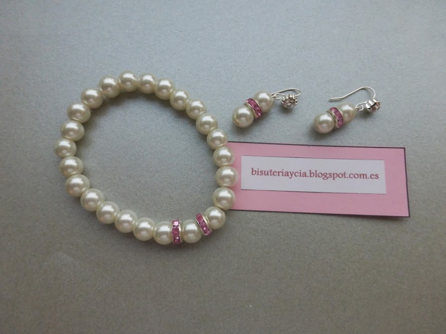 Si queréis también podéis hacer una pulsera de conjunto, para ello, solo os hace falta unas perlas y unos espaciadores circulares, y es tan fácil como unirlo todo con una goma elástica.
