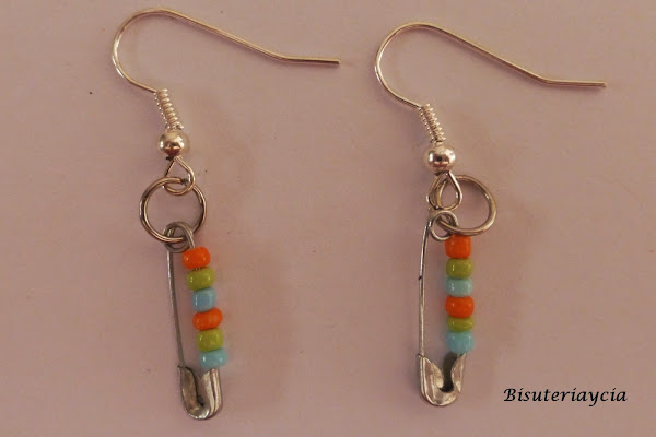 Para hacerlos solo os harán falta agujas imperdibles, rocalla de colores, anillas y el pendiente.