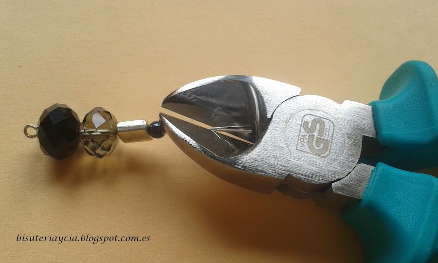 Paso tres, si el bastón para el pendiente es muy largo, con unos alicates de corte, cortaremos un poquito el bastón.