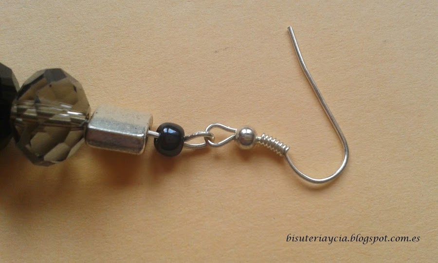 Veamos, bastones para pendientes, bolas facetadas, unas entre piezas, rocalla y el pendiente.