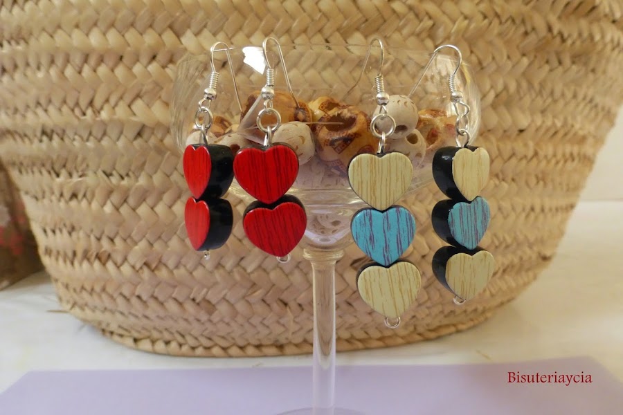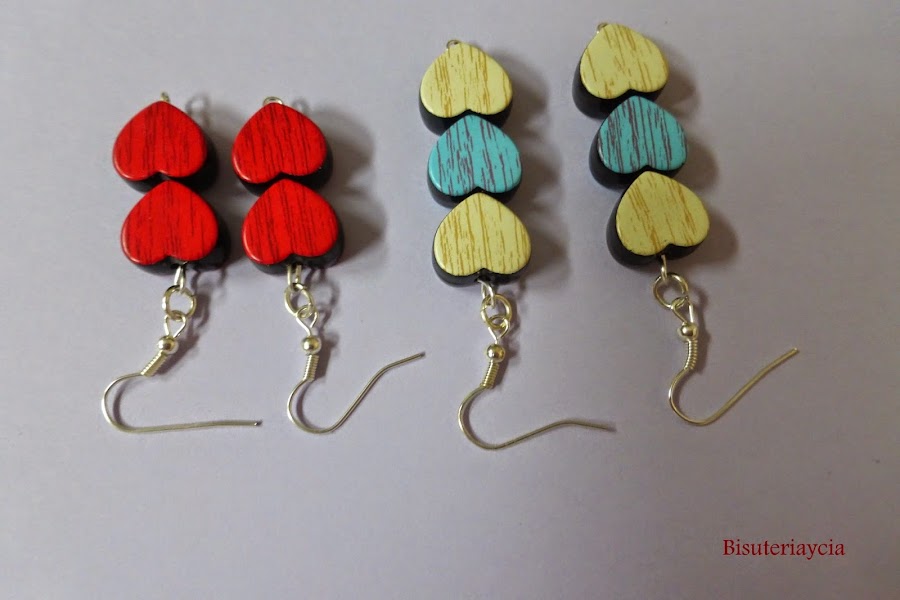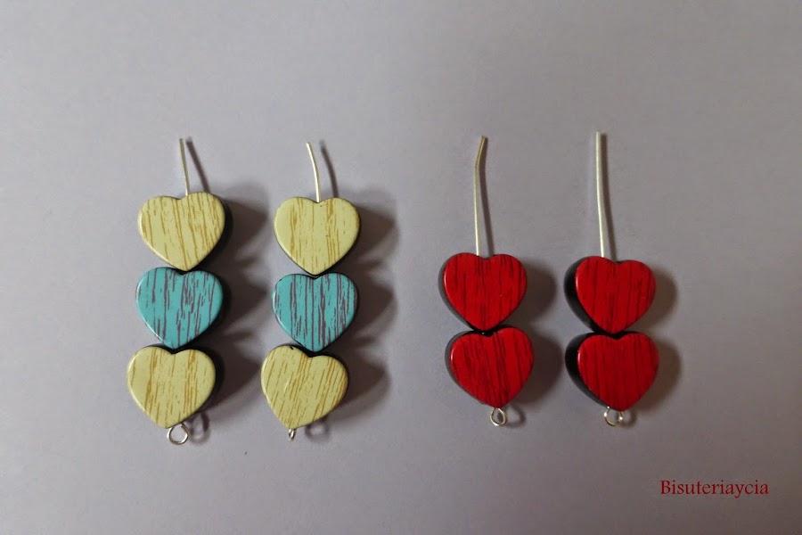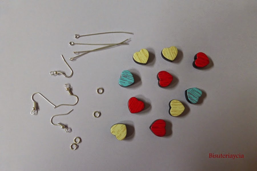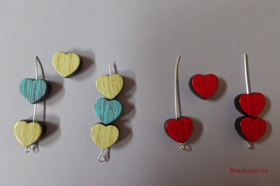El primer paso sera enfilar los corazones de la manera que mas os gusten en los bastones para pendientes.
