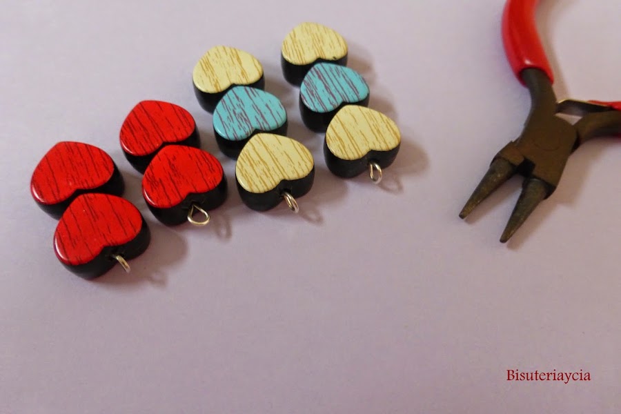 Y ya para acabar el último paso sera unir los corazones al pendiente con una anilla.