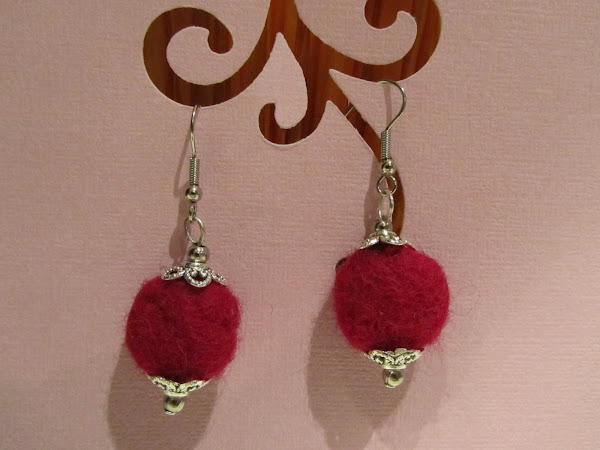 Estos están hechos con trocitos de filetro plano de colores y con lana de fieltrar. Ya os hice referencia en otro post dónde podías mirar cómo hacer las bolas con fieltro: http://fieltruna.blogspot.com.es/2013/03/pendientes-con-fieltro.html