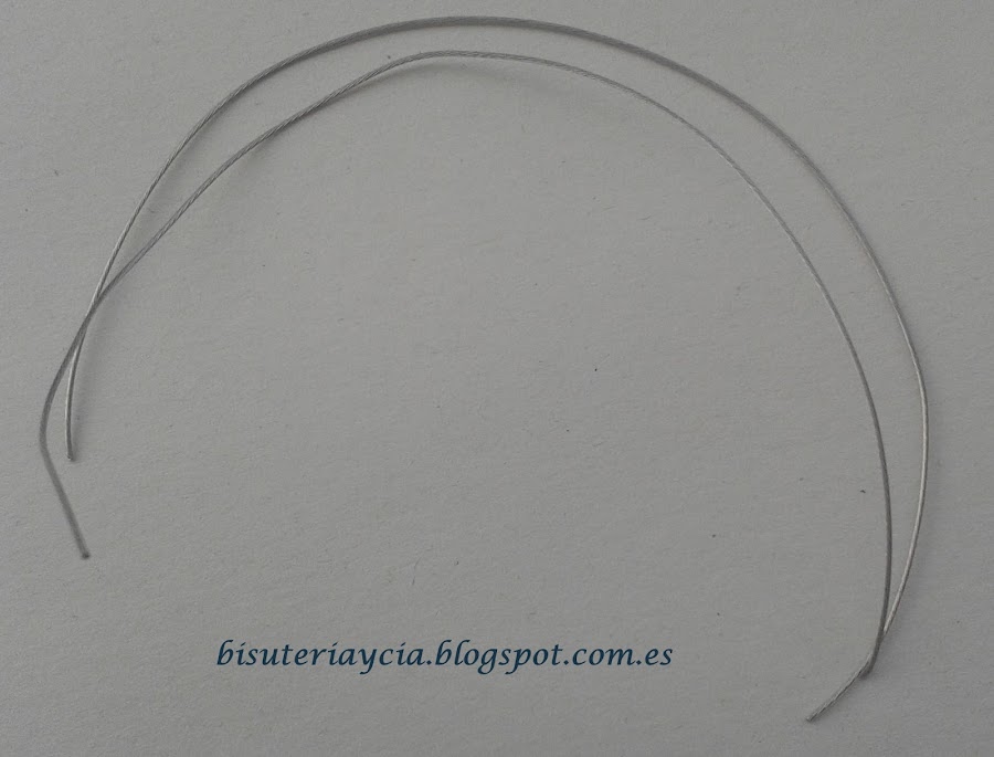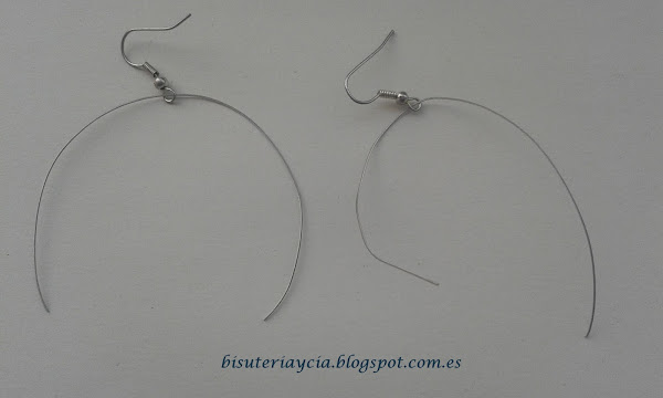 El paso siguiente sera enfilar las dos bolas por los dos extremos del alambre, procurando colocar las dos bolas a la misma altura en los dos pendientes.