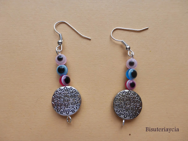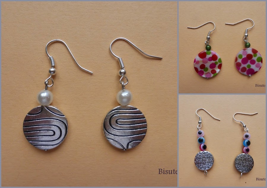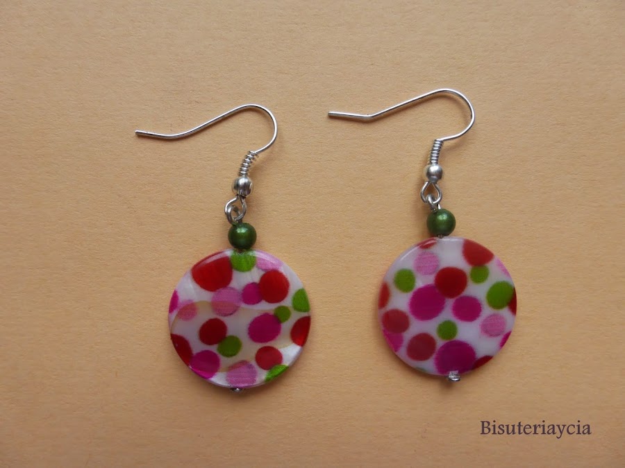 El post de hoy lo voy a dedicar a los pendientes. Esta vez casi no habrá explicación, como dicen una imagen vale mas que 1000 palabras.Los pendientes que os voy a mostrar, están formados por piezas circulares y pequeñas bolitas que los complementan.