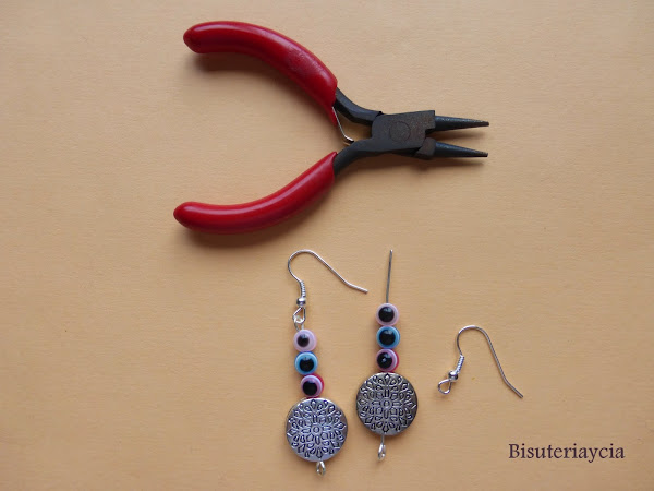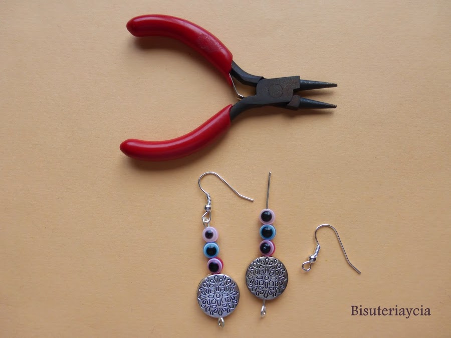 Para hacerlos solo tenéis que enfilar las piezas en el bastón, con unos alicates darle forma a la anilla y colocar el pendiente.