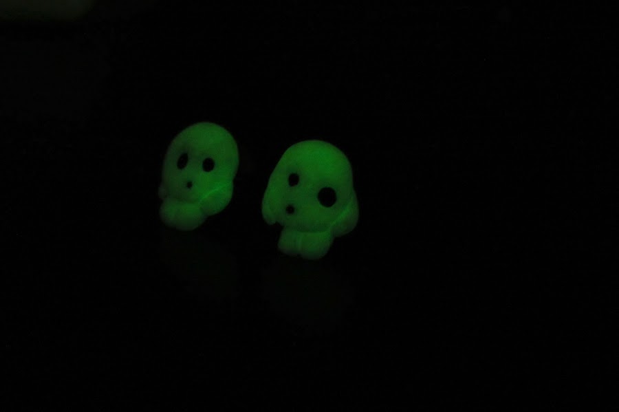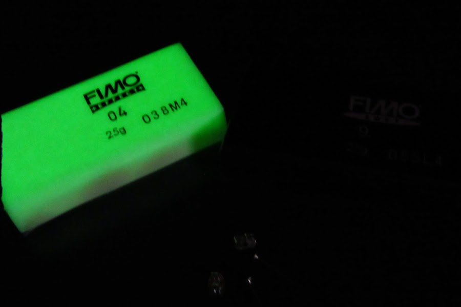 El fimo que he utilizado para hacerlos, brilla en la oscuridad, me encantan como han quedado. Os pongo el paso a paso de como los he hecho.