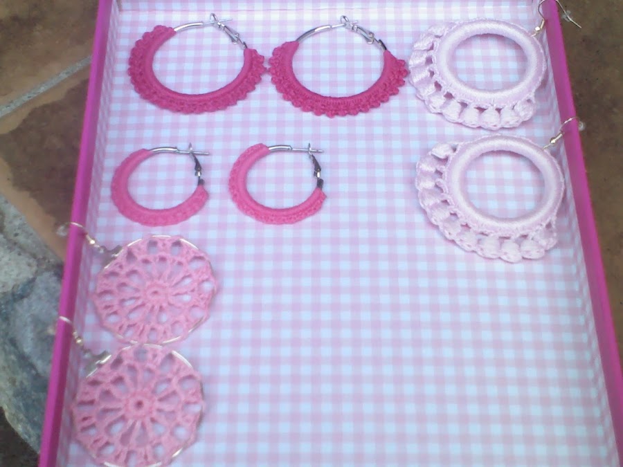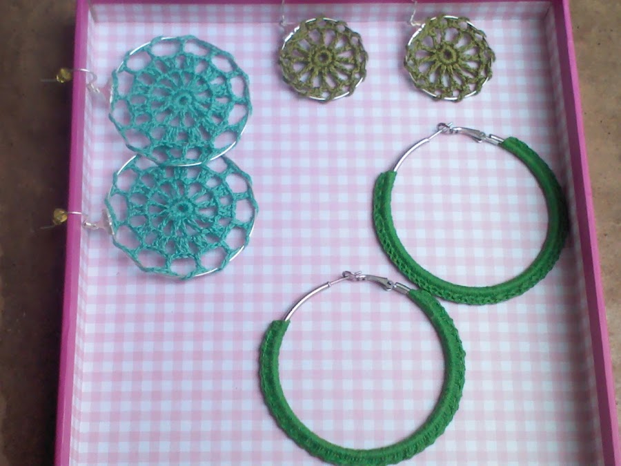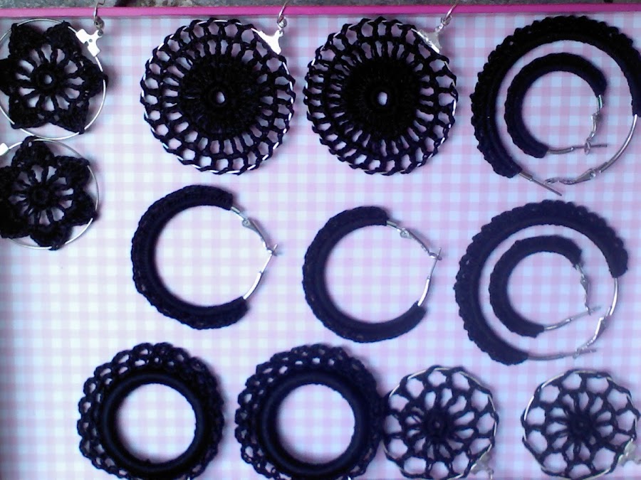 Hola amigas, ahora estoy haciendo cositas con ganchillo. Os voy a enseñar unos pendientes superfaciles. Estan realizados con hilos metalicos y en algunos he puesto abalorios