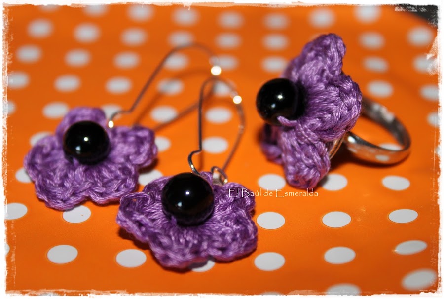 Son muy sencillos, es una flor simple en su color favorito con unas perlas de cristal negras.
