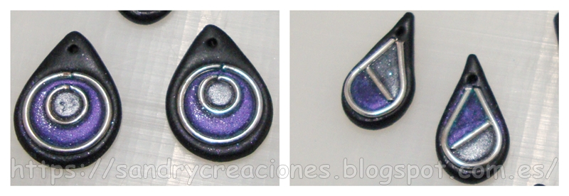 Tras este séptimo y último paso terminamos este par de pendientes de pasta polimérica con PearlEx y polvos de embossing:
