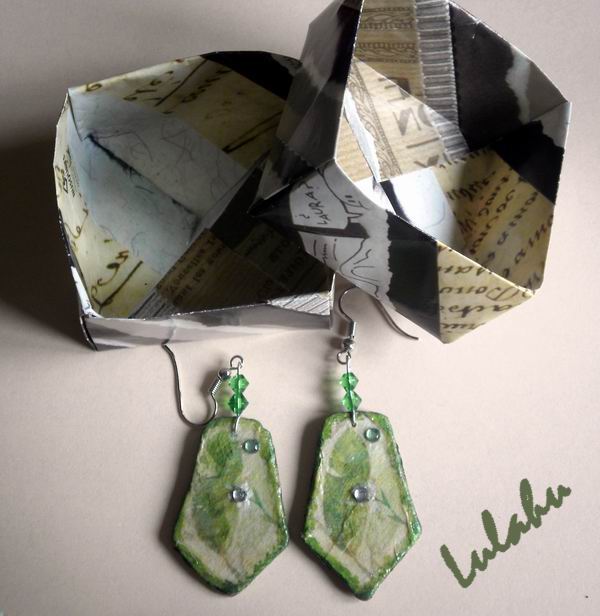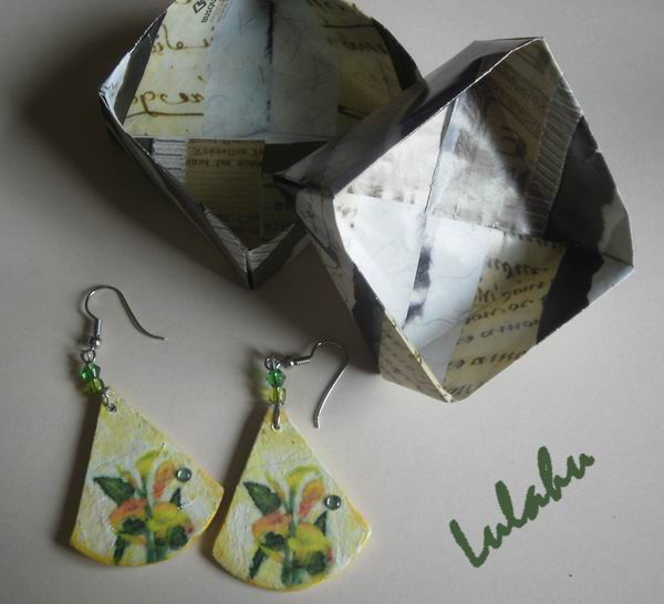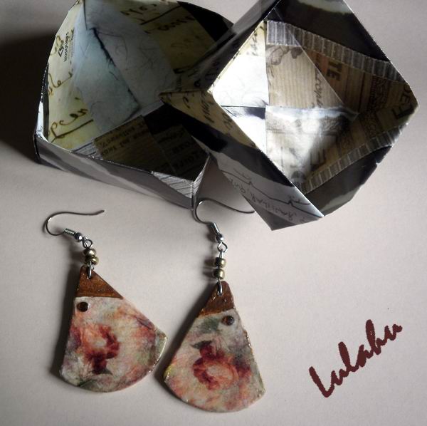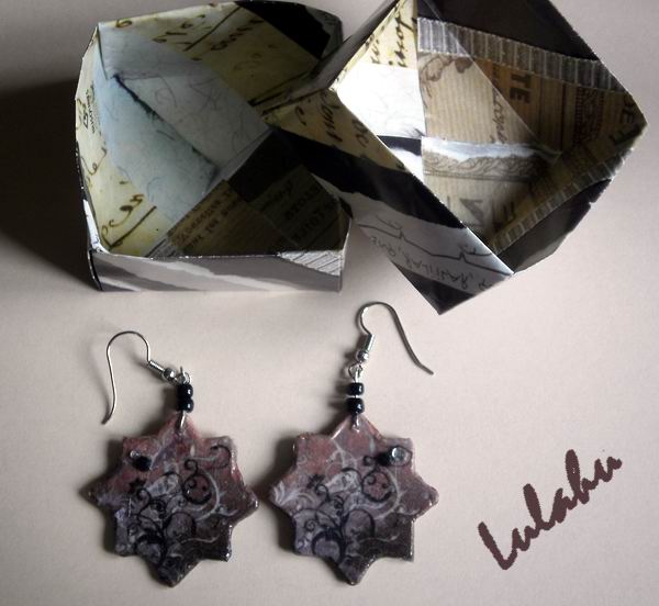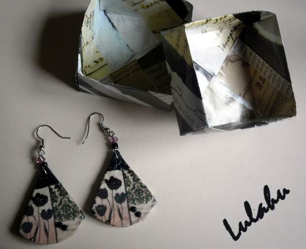 La reconstrucción de hoy corresponde nuevamente a unos pendientes. Los originales son también del 2009, cuando estaba empezando a trabajar la arcilla polimérica, y todavía no contaba con los materiales ni las fornituras suficientes, así que me las arreglaba como podía. De hecho, en lugar de usar un alfiler de bisutería, las cuentas están unidas con alambre de ferretería. Además, los pendientes es ...