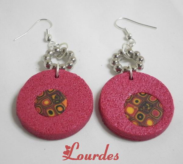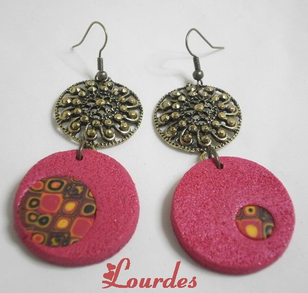 Un día de los que saqué la pasta de modelar para que jugasen los niños, se me ocurrió hacer con ella unos simples círculos en dos tamaños distintos, pensando hacer con ellos unos conjuntos de pendientes y colgante. Los he tenido mucho tiempo sin decorar, y una vez decorados, han vuelto a estar esperando hasta que al fin ayer me decidí a hacer el montaje final. Y así es cómo me han quedado: COLGA ...