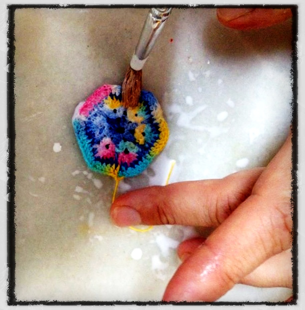 Para darles un poco de consistencia los he bañado en un poco de cola blanca con agua en una mezcla con una parte de cola y tres de agua. No mucho más concentrada porque si no quedan demasiado duros.