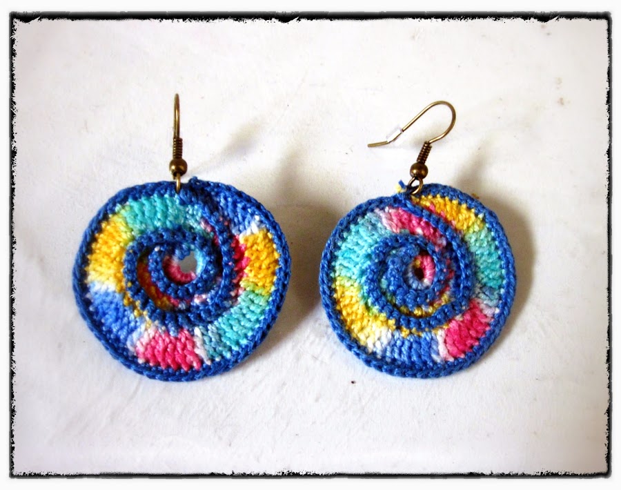 Y estos están hechos con una espiral con punto alto doble y a continuación una vuelta en color azul sobre la base de la espiral en punto enano.