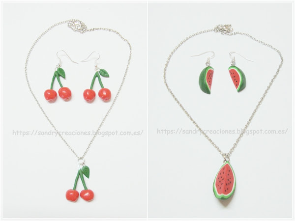 Aquí estamos de nuevo y seguimos con entradas refrescantes y afines al tiempo que estamos. En esta ocasión nos hemos decantado por la bisutería con pastas poliméricas, concretamente con unos conjuntos de colgantes y pendientes de cerezas y trozos de sandía realizados con pastas poliméricas.