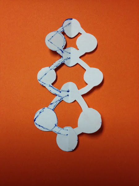 Empieza dibujando los triangulos, con una moneda de un centimo he dibujado los circulos pequeños y con una de 2 centimos los más grandes. Recorta el dibujo y abrelo.