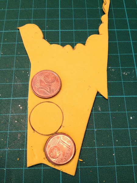 Pasalo a la goma eva por la parte de atras, recorta dos.