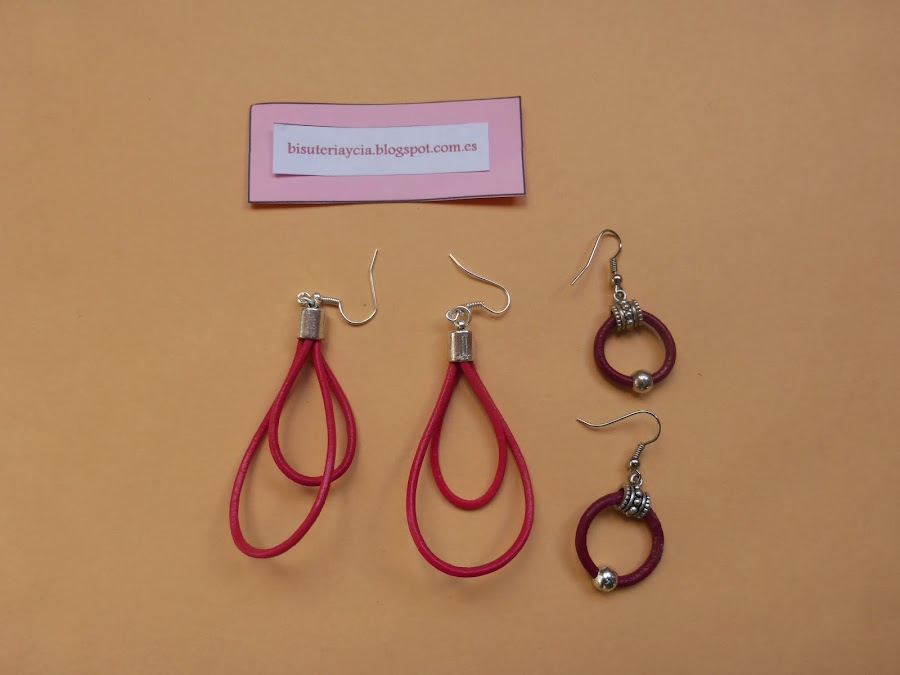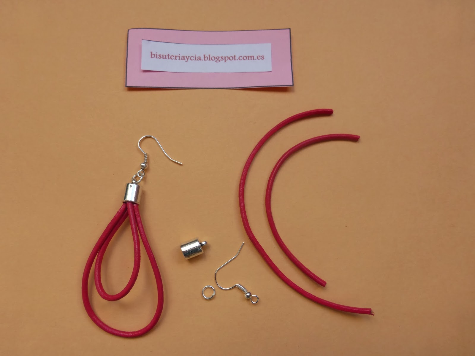Para el segundo par de pendientes solo no va hacer falta cuero redondo, capuchones, anillas y el pendiente.