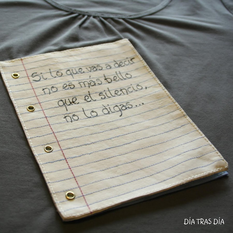 ¿Verdad que son unas ideas geniales? Al verlo, pensé que aplicando esta idea a mis camisetas, podrían quedar muy originales. Y como así resultaba algo soso, ¿por qué no escribir en esta hoja de cuaderno de toda la vida una frase? ¿Y si esa frase fuese una que tuviese un significado especial para nosotros?