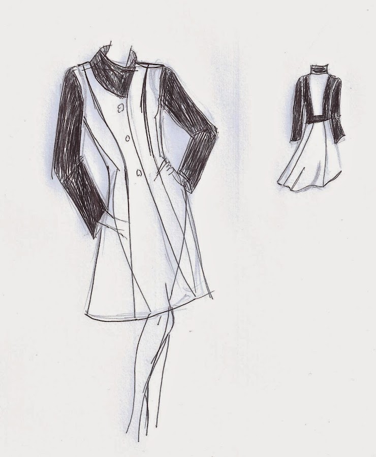 La idea va tomando forma Cuando llegué a este punto empecé a hacer las bases de cuerpo, después le dí las holguras propias de un abrigo, ya que la prenda necesita estar preparada para que se pueda llevar debajo un jersey y lo que haga falta...