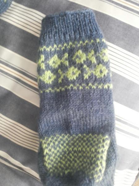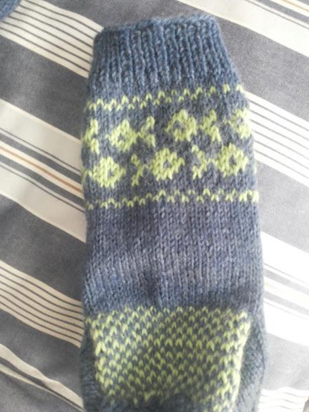 Quise hacerlos lo más sencillos que pude, pero con un ligero toque en Fair Isle. Y una vez metida en harina les di un montón de vueltas hasta obtener el modelo de la foto. Se me ocurrió reforzar también los talones y punteras, y ya de paso aprender algunas cosillas por las bravas.