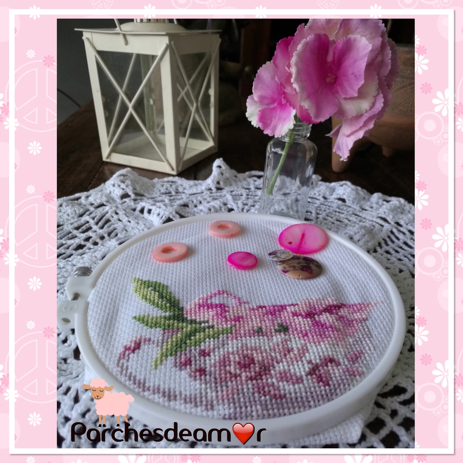 Ahora aunque ya paso jajja quería mostrarte algunas fotos de cuando la estaba bordando, la verdad fue muy agradable y la hice en ratos de las tardes mientras aprovechaba la luz natural que tengo ahora en este apto. y que en el otro era bien escasa.