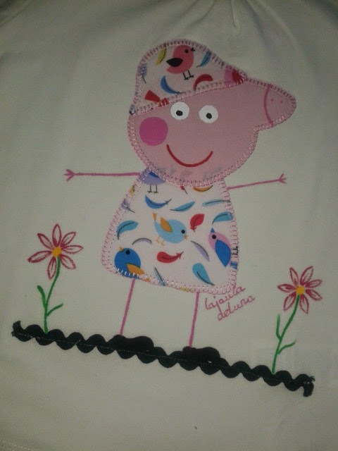 Este verano Pepa Pig ha arrasado, tanto en camisetas como en bolsitas para el almuerzo, las niñas están encantadas con ella, terminadas de coser por la noche y por la mañana ?