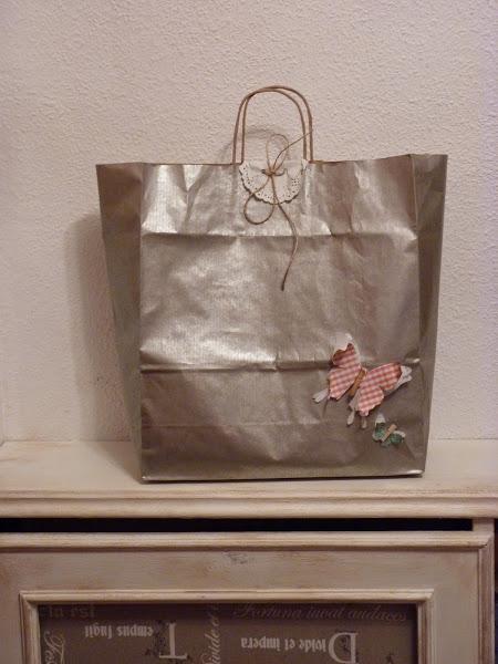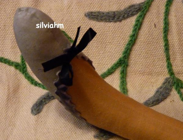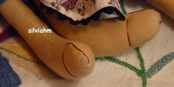 De inspiración Tilda, aunque he cambiado algunas cosas. Me gustan especialmente los pies de Pepa, muy coqueta ella con su lacito. Son grandes, miden 67 y 70 cm. respectivamente.Y esta es la bolsa preparada para ellos.