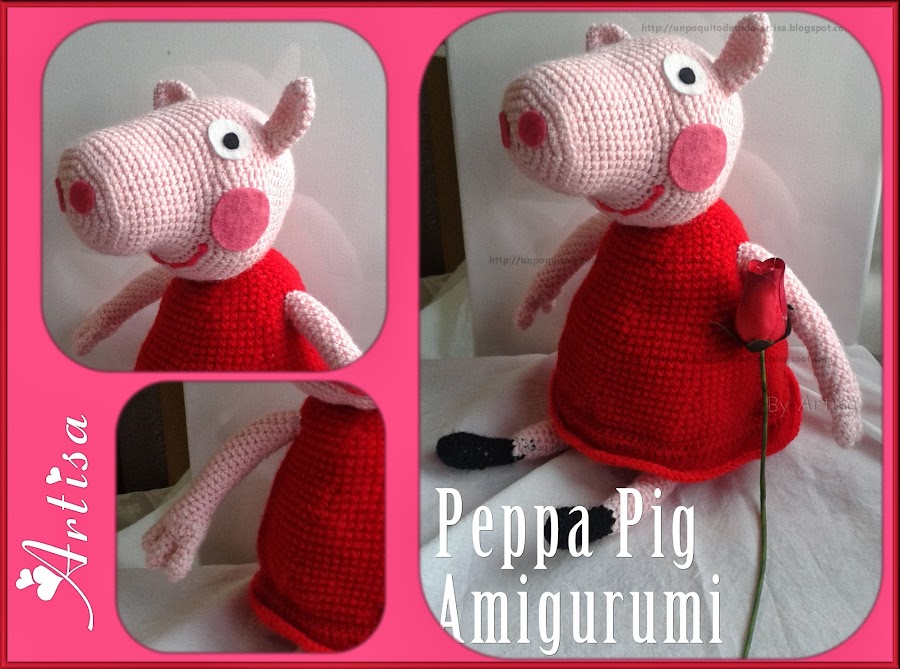 Bueno que me he enrollado a contaros historias, jejejej........ yo quería enseñaros una Peppa pig amigurumi que he realizado a mano a crochet, combinando varios patrones que encontré y modificando algunas cosas a mi gusto. Así que se puede decir que es un medio patrón mio, lo malo que no se me ocurrió ir apuntándolo, jejejejej