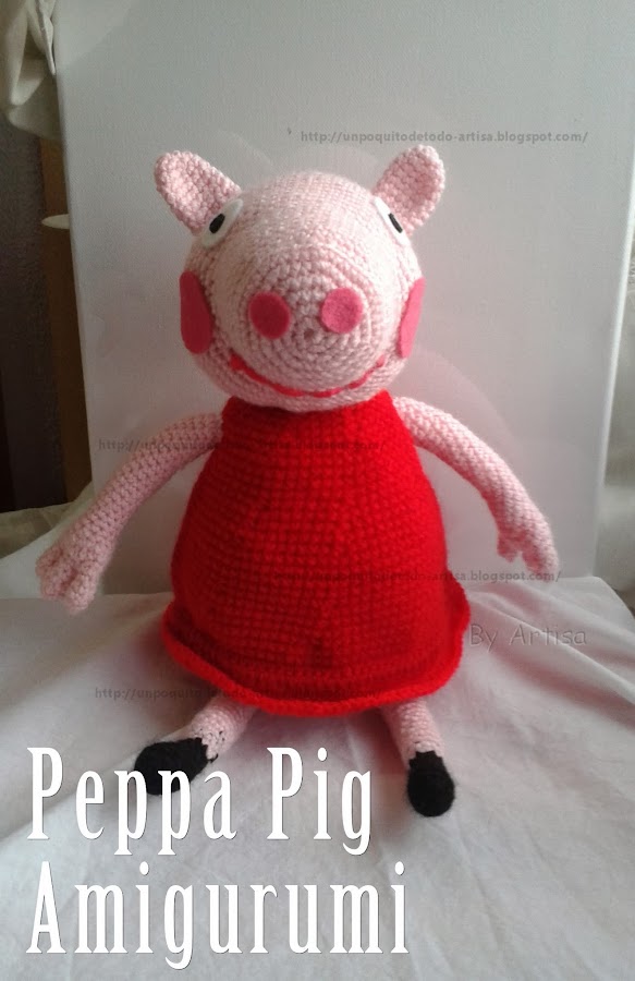 Los dedos son invención mía, no me gustaban los de ningún patrón, eran muy bastos y no me terminaban de convencer, así que los diseñe como me gustan. Los pies los iba a hacer de otro modo, pero me fijé en la foto de Peppa pig (dibujo) y es así como los tiene.
