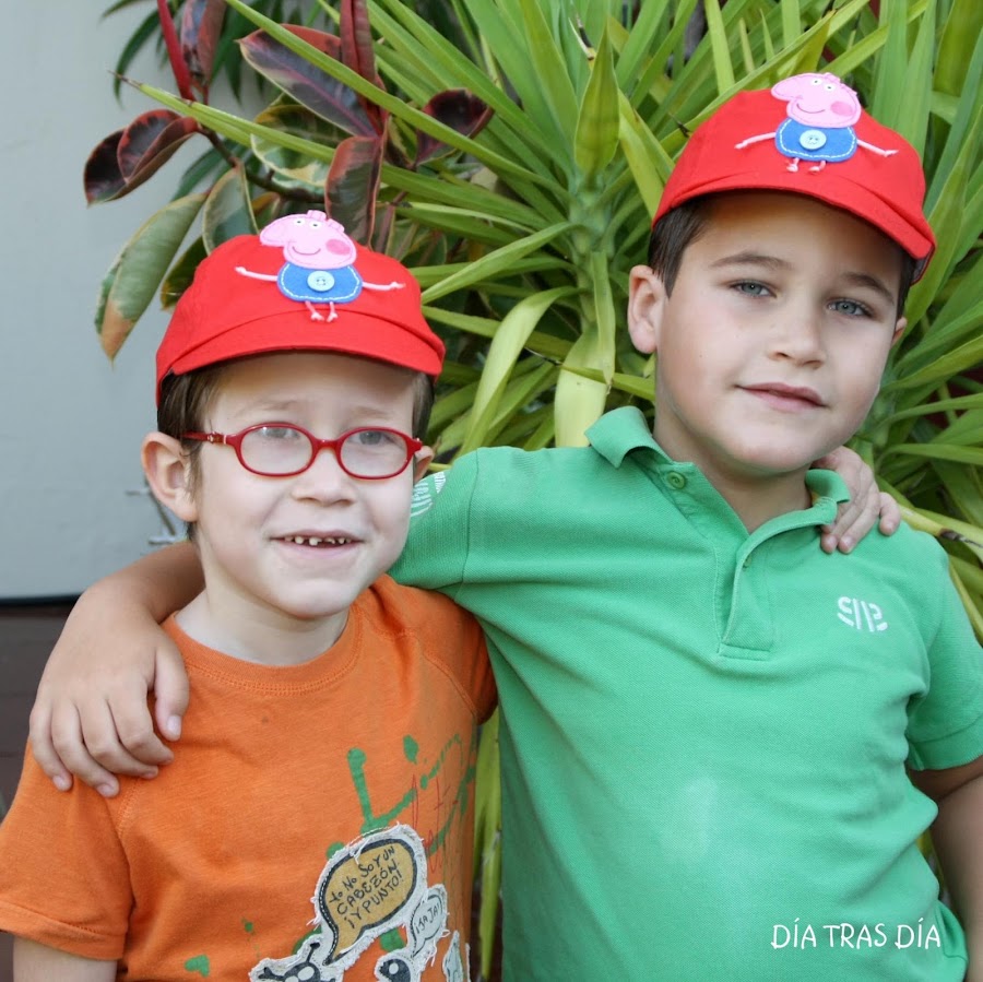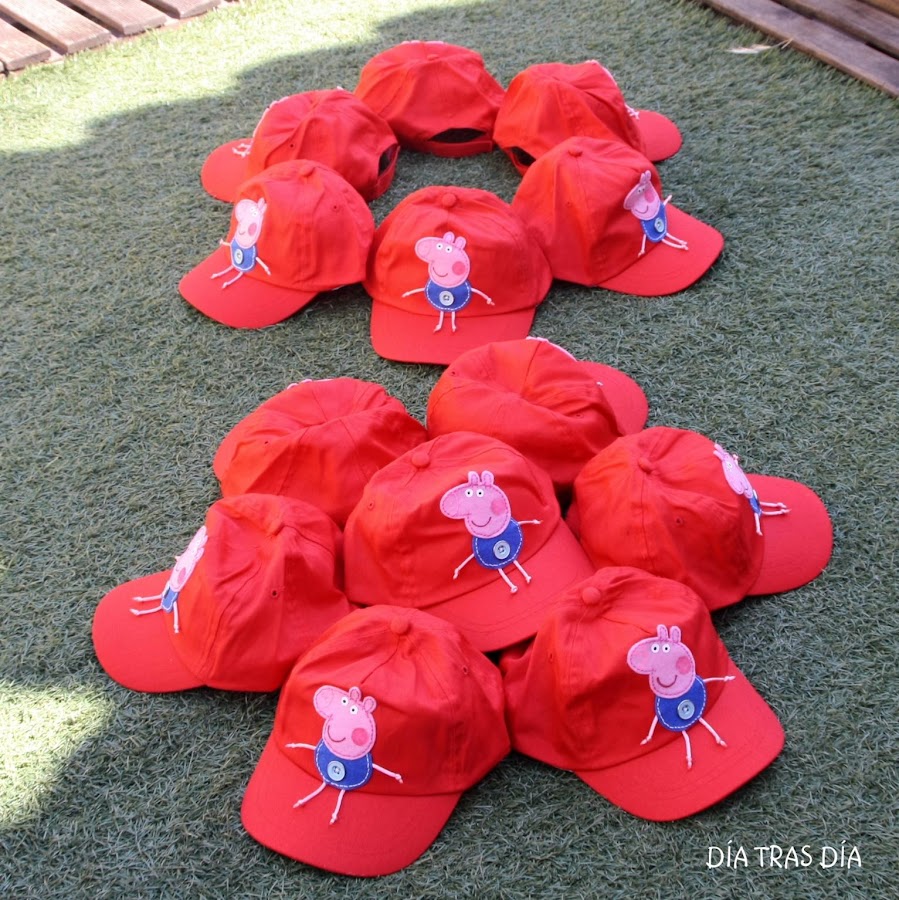 Cuando ya teníamos esto claro, me preguntó si también podría hacer gorras con George para los 13 niños que completaban la clase, para que todos tuviesen un regalito similar. Y por supuesto, le dije que si. Me lié la manta a la cabeza y estuve entretenida con los regalitos para los 25 niños.