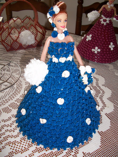 Otra de mis innovaciones es la decoración de muñecas con distintos materiales y con colores al gusto de cada quien. Hago muchas para cumpleaños tanto de niñas como de mamás y abuelas, para comuniones e incluso alguna boda. Tambien os mostraré más.