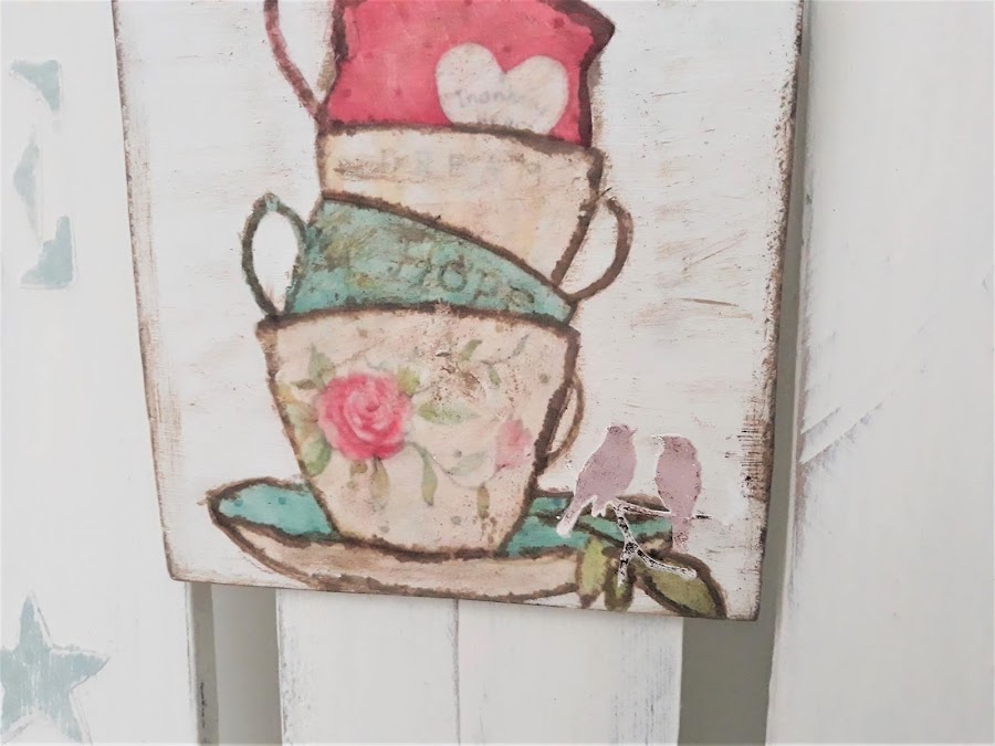 Esos dos pajaritos están hechos con un stencil en relieve.