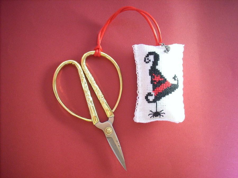 ¡Siempre encontraremos la tijera, porque ese alegre sombrerillo de brujita se nos vendrá a la vista entre miles de objetos! Es una idea sencilla y divinamente organizada por Makarmenn. Es también uno de los artículos más pequeños presentados a concurso, lo cual demuestra que las dimensiones resultan un factor secundario para triunfar con un diseño en punto de cruz.
