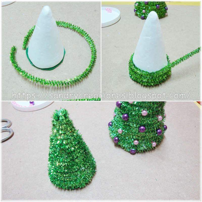 Vamos con la tercera idea Navideña de este año! Esta vez os presentamos unos pequeños y sencillos Arbolitos de Navidad realizados con porexpan, limpiapipas y abalorios.