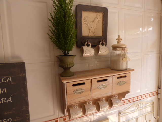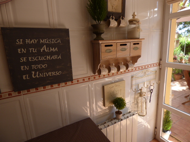 Lo hubiera puesto en la pared grande, sobre la mesa, pero si le digo a mi marido que me haga otro agujero en los azulejos me ma-ta jaja (seguro que os suena de algo) así que he aprovechado el que ya habia en ésta otra pared estrecha.