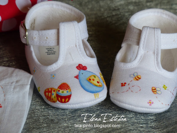 Habitualmente no suelo pintar prendas de vestir para bebes, se les quedan pequeñas demasiado pronto, pero esta vez he hecho una excepción. La "abuela" Nina tenía un capricho. Quería unas zap ...