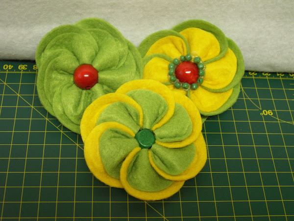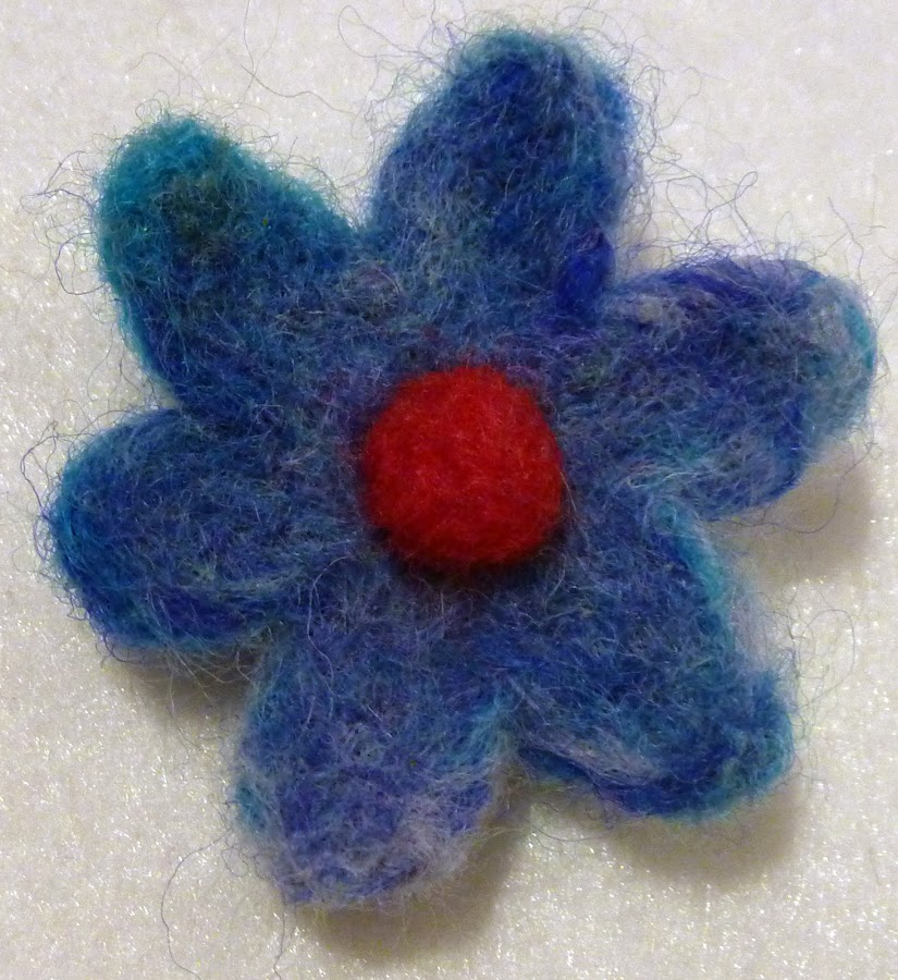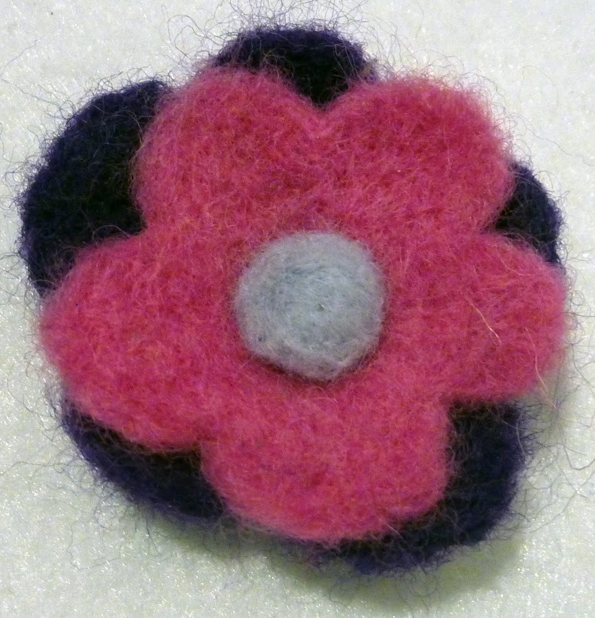 Y por último estas dos flores de fieltro modelable, están hechas con aguja y cardando la lana, como son detalles pequeños, no hace falta usar agua jabonosa, con la aguja de cardado quedan perfectas.