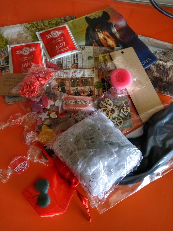 Aprovecho esta entrada para dar las gracias a Mia del blog Craftartista por estos regalos que me ha enviado. Participé en su cumple blog y ella es tan generosa que me ha enviado todos estos presentes, desde bonitas servilletas, lazos de tela, encajes, unos pendientes de lana alfieltrada, unas bolsitas de té y hasta una mascarilla, todo me ha encantado y ya le estoy dando uso.