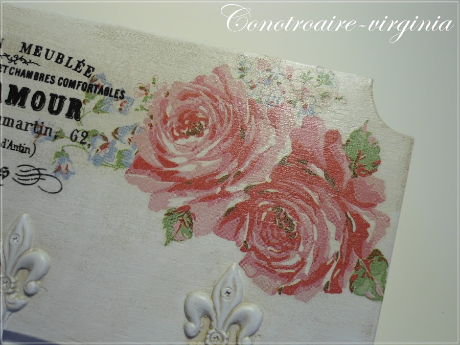 Le hice con un retal de madera que tenía por casa. Como fondo dos manos de pintura blanca.