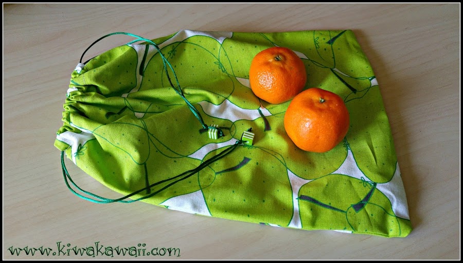 Tal y como dice el título, son peras para las mandarinas; y es que necesitaba una bolsa para llevarme fruta para almorzar en el trabajo (eso de llevarla suelta tal cual en el bolso queda un poco feo, ¿verdad?) . La tela de peras me encantó nada más verla, creo que es muy acertada para esta costura, todo y que soy más de llevar mandarinas, jejeje!