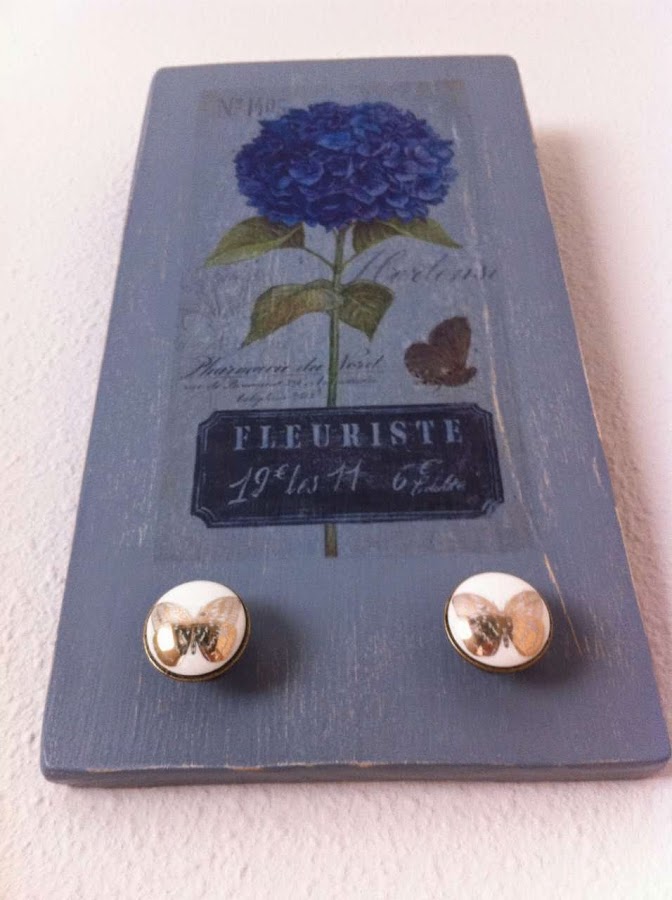 Para terminar, la barnicé y le coloqué dos pomos con mariposas a modo de gancho.