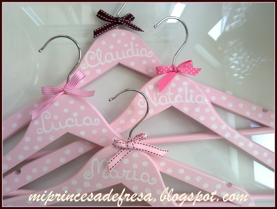Mi hija Blanca está con la ilusión de ir montando, poco a poco, su casa. Me pidió, entre muchas cosas, unas perchas para su vestidor y aquí tenéis una pequeña muestra. Nunca había hecho transfer y me ha gustado un montón la técnica. Desde aquí, muchas gracias a las personas que me han ayudado.También hay forradas en tela. ¿ Cúal os gusta más?