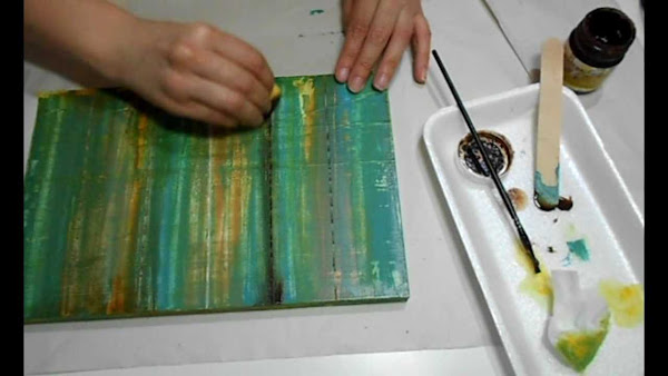 Con una esponja repartimos por toda la base un color ocre