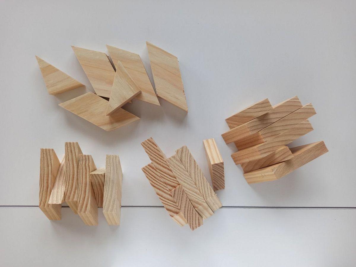 3- Diseño: En este paso toca pasárselo muy bien. Coloqué las piezas de mil maneras hasta que encontré la forma que más me gustaba para el perchero DIY. Todo vale así que probad y probad y hacedlo a vuestro gusto.