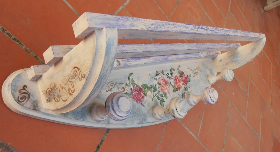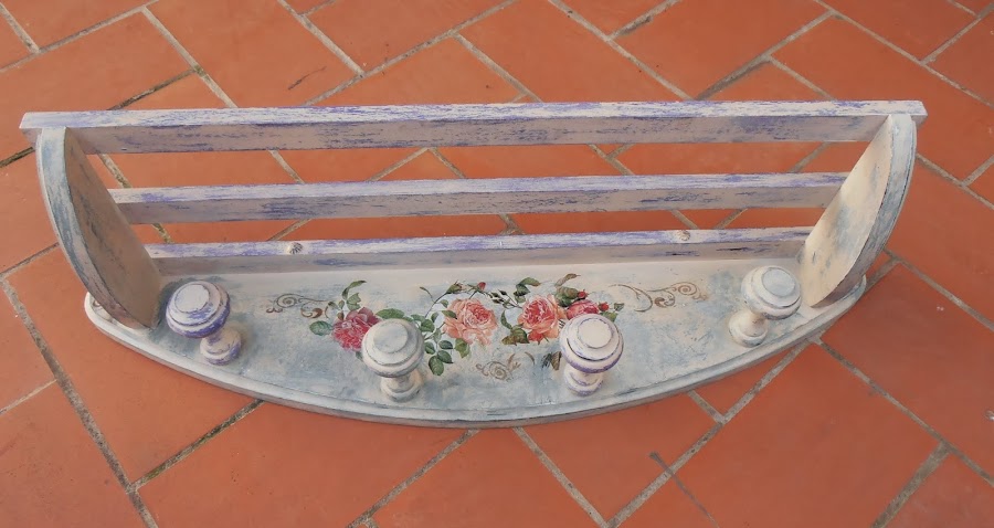 Para acabar lo decoré con una servilleta con dibujos de unas rosas y stencil, una mano de barniz y...listo..