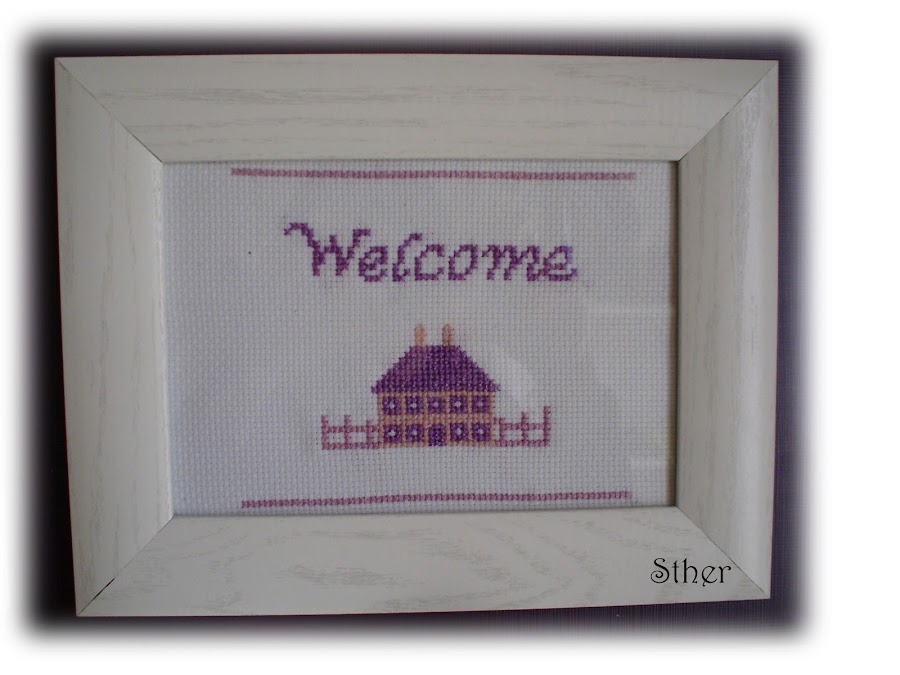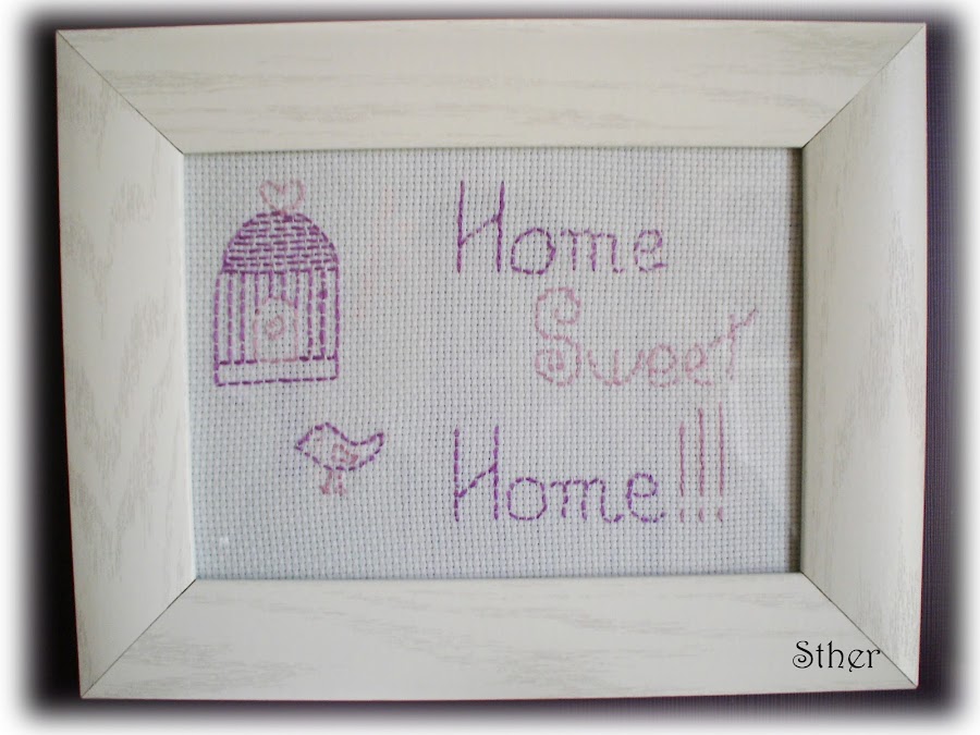 Quería probar algo nuevo como el punto de cruz, pero a la vez sencillo ya que para empezar no quería complicarme mucho... También que reflejara algo acogedor a la vez que tuviera un toque juvenil, que yo creo que se lo da la mezcla de colores blanco y morado.
